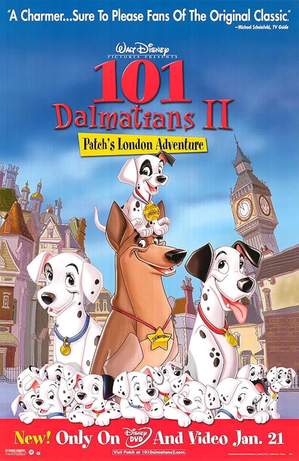 퐁고와 퍼디타의 새끼 강아지 패치는 101마리 중 한 마리로 사는 삶에는 만족하지 못한다. 그러던 어느 날 자신이 꿈에 그리던 TV 속 영웅 선더볼트를 만나게 된다. 선더볼트의 충실한 조수 라이트닝은 패치에게 제작자들이 새로운 출연진을 구하고 있다는 소식을 전해 주고, 선더볼트와 패치는 현실 세계에서 진짜 영웅이 되기 위한 여정을 떠난다. 강아지에 집착하는 크루엘라 드빌의 등장에 패치와 선더볼트는 팀워크와 우정으로 맞서 싸운다.